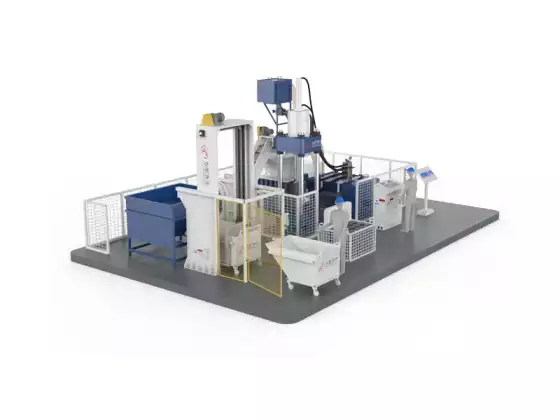 기계는 수직 또는 수평 유압 압축 시스템을 통해 작동합니다. 구리 칩이 챔버로 공급되면 고압 유압 실린더가 구리 칩을 조밀한 블록으로 압축합니다. 분리된 절삭유는 회수되어 재사용이 가능합니다.